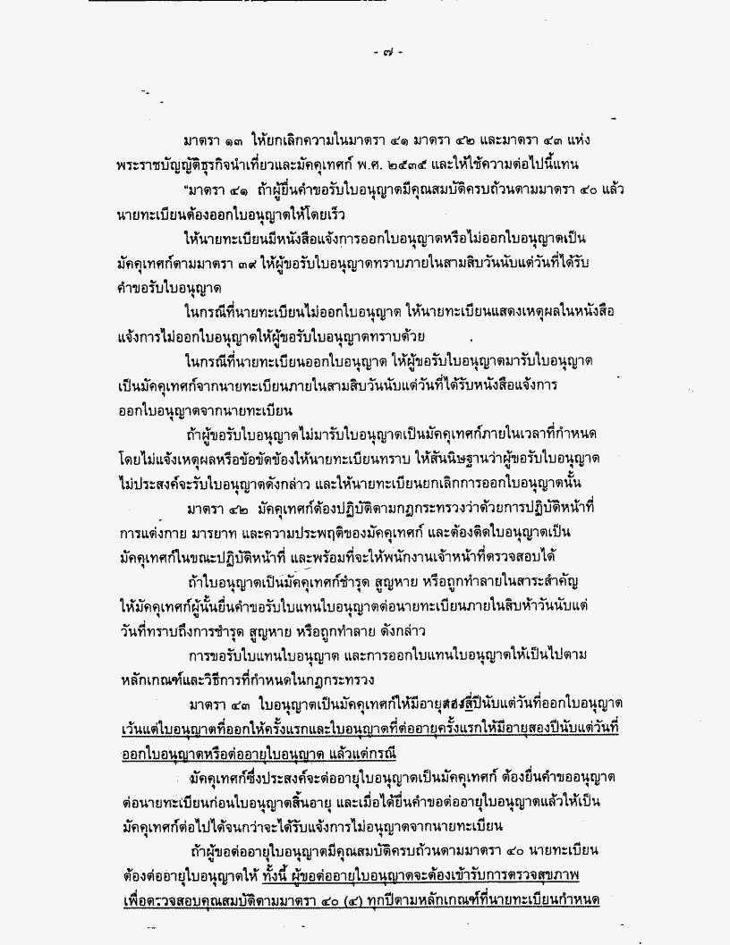 • ร่างพระราชบัญญัติธุรกิจนำเที่ยวและมัคคุเทศก์ (ฉบับที่ ...) พ.ศ. .....