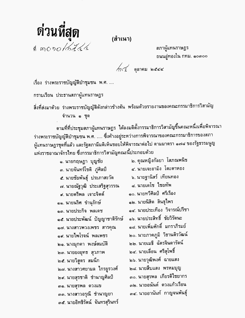 ชื่อเอกสาร :   ร่างพระราชบัญญัติป่าชุมชน พ.ศ. ..... ซึ่งคณะกรรมาธิการวิสามัญพิจารณาเสร็จแล้ว