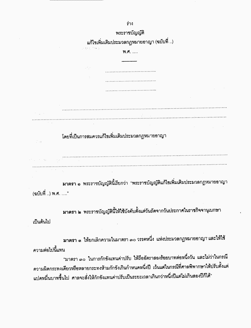 ชื่อเอกสาร : ร่างพระราชบัญญัติแก้ไขเพิ่มเติมประมวลกฎหมายอาญา (ฉบับที่ ..) พ.ศ. ....