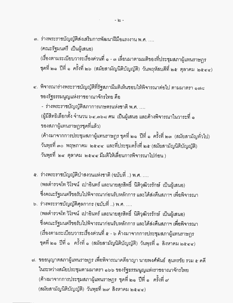 • ระเบียบวาระการประชุมสภาผู้แทนราษฎร ชุดที่ 21 ปีที่ 1 ครั้งที่ 27 (สมัยสามัญนิติบัญญัติ) วันพุธที่ 31 ตุลาคม 2544