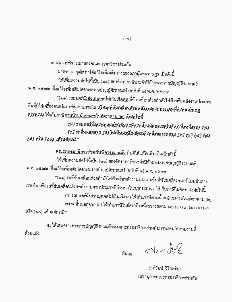• ร่างพระราชบัญญัติรถยนตร์ (ฉบับที่..) พ.ศ..... (กำหนดอัตราภาษีรถที่ขับเคลื่อนด้วยกำลังไฟฟ้า)