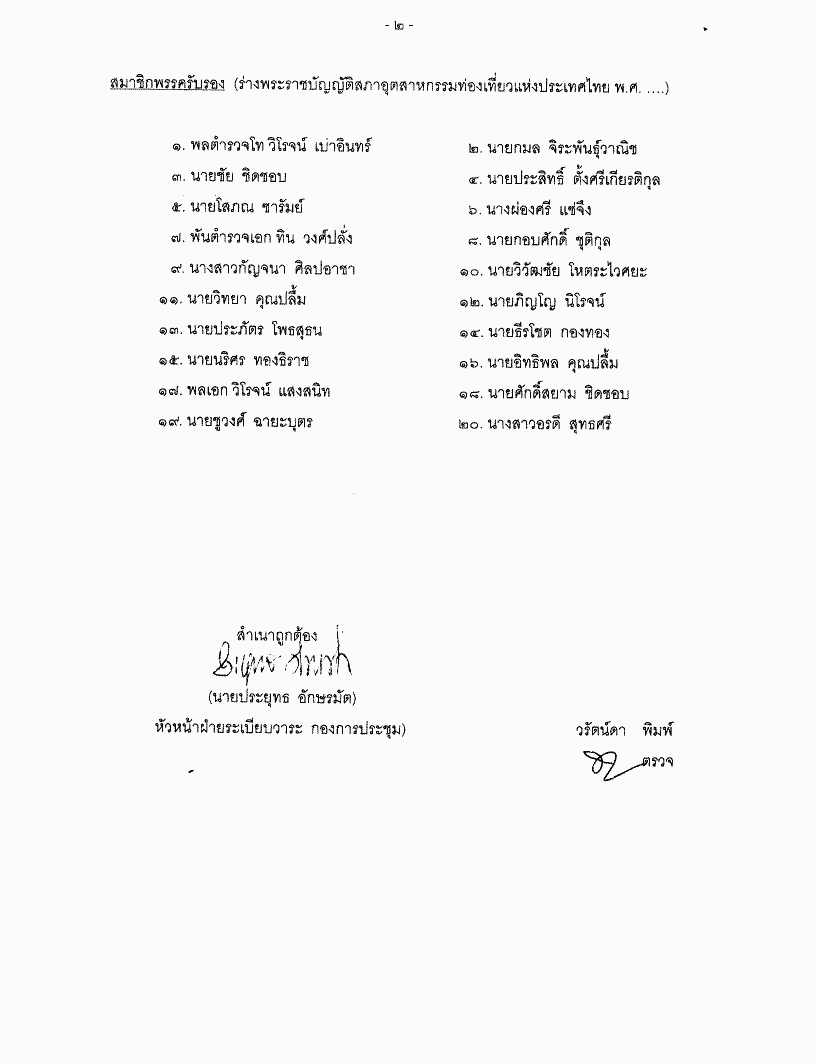 • ร่างพระราชบัญญัติสภาอุตสาหกรรมท่องเที่ยวแห่งประเทศไทย พ.ศ. ....