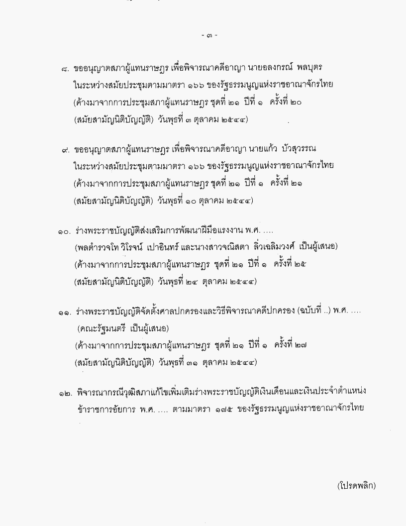 ชื่อเอกสาร : ระเบียบวาระการประชุมสภาผู้แทนราษฎร ชุดที่ 21 ปีที่ 1 ครั้งที่ 29 (สมัยสามัญนิติบัญญัติ) วันพุธที่ 7 พฤศจิกายน 2544