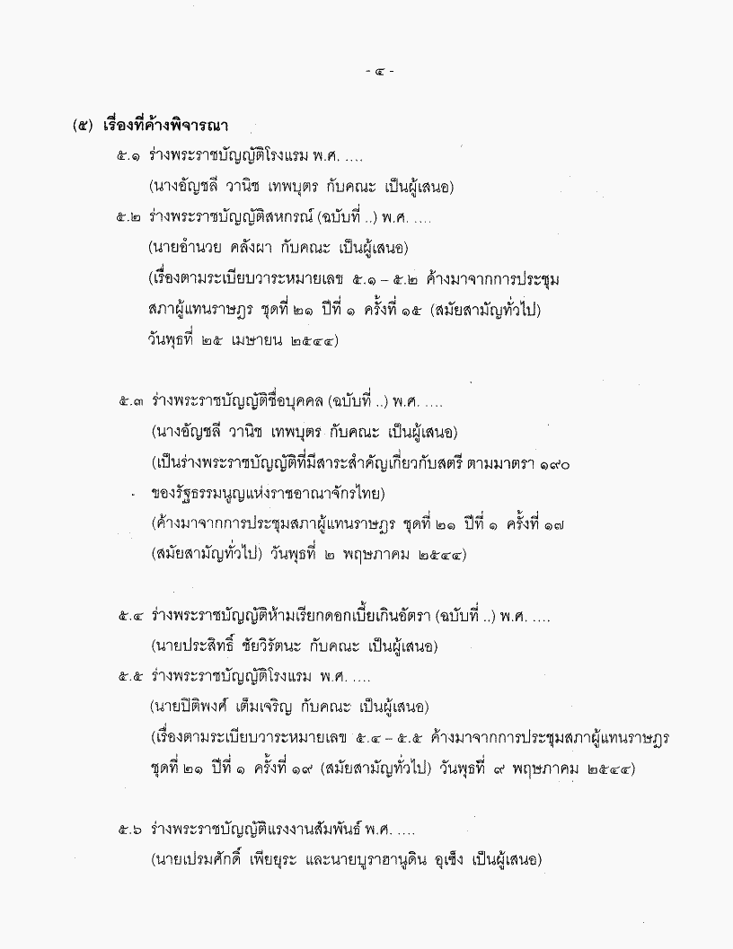 • ระเบียบวาระการประชุมสภาผู้แทนราษฎร ชุดที่ 21 ปีที่ 1 ครั้งที่ 29 (สมัยสามัญนิติบัญญัติ) วันพุธที่ 7 พฤศจิกายน 2544