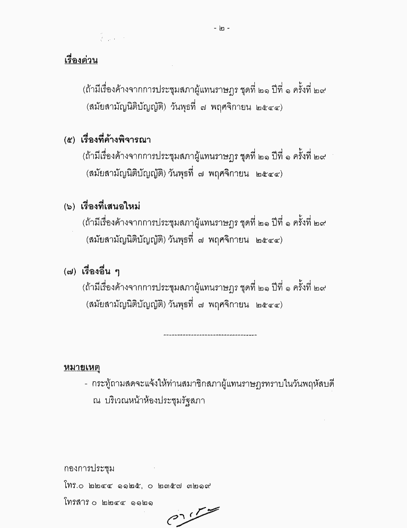 • ระเบียบวาระการประชุมสภาผู้แทนราษฎร ชุดที่ 21 ปีที่ 1 ครั้งที่ 30 (สมัยสามัญนิติบัญญัติ) วันพฤหัสบดีที่ 8 พฤศจิกายน 2544