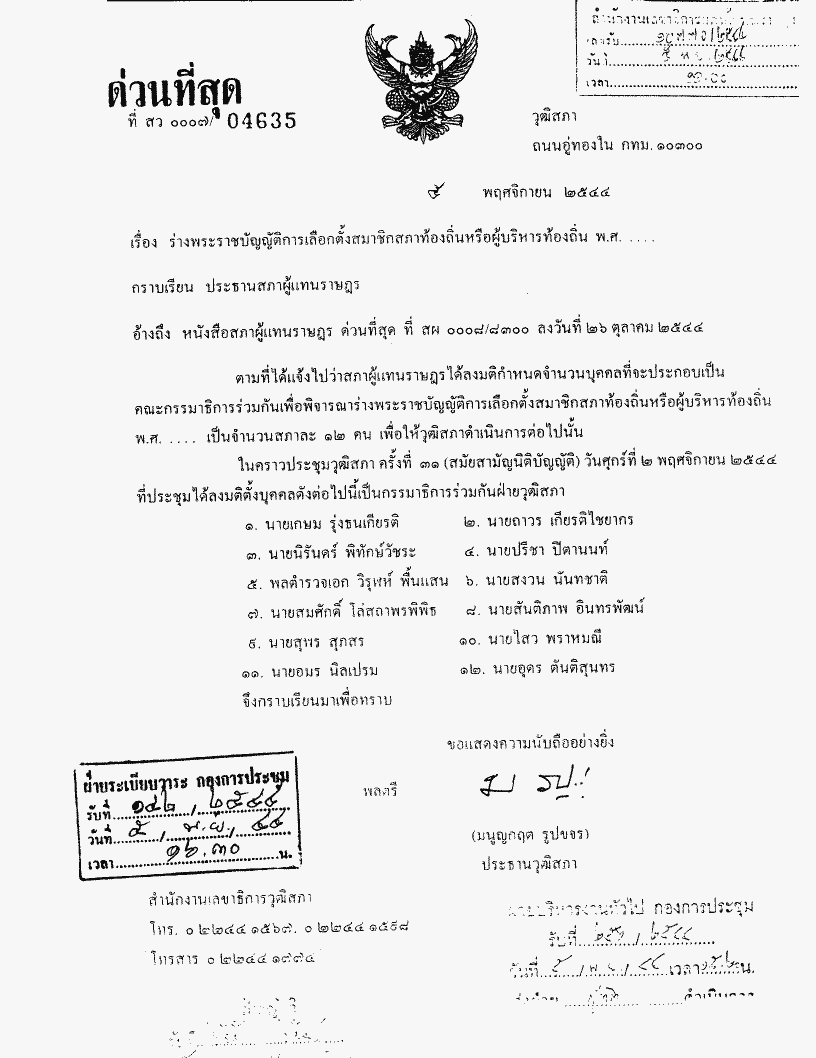 ร่างพระราชบัญญัติการเลือกตั้งสมาชิกสภาท้องถิ่นหรือผู้บริหารท้องถิ่น พ.ศ. .... |