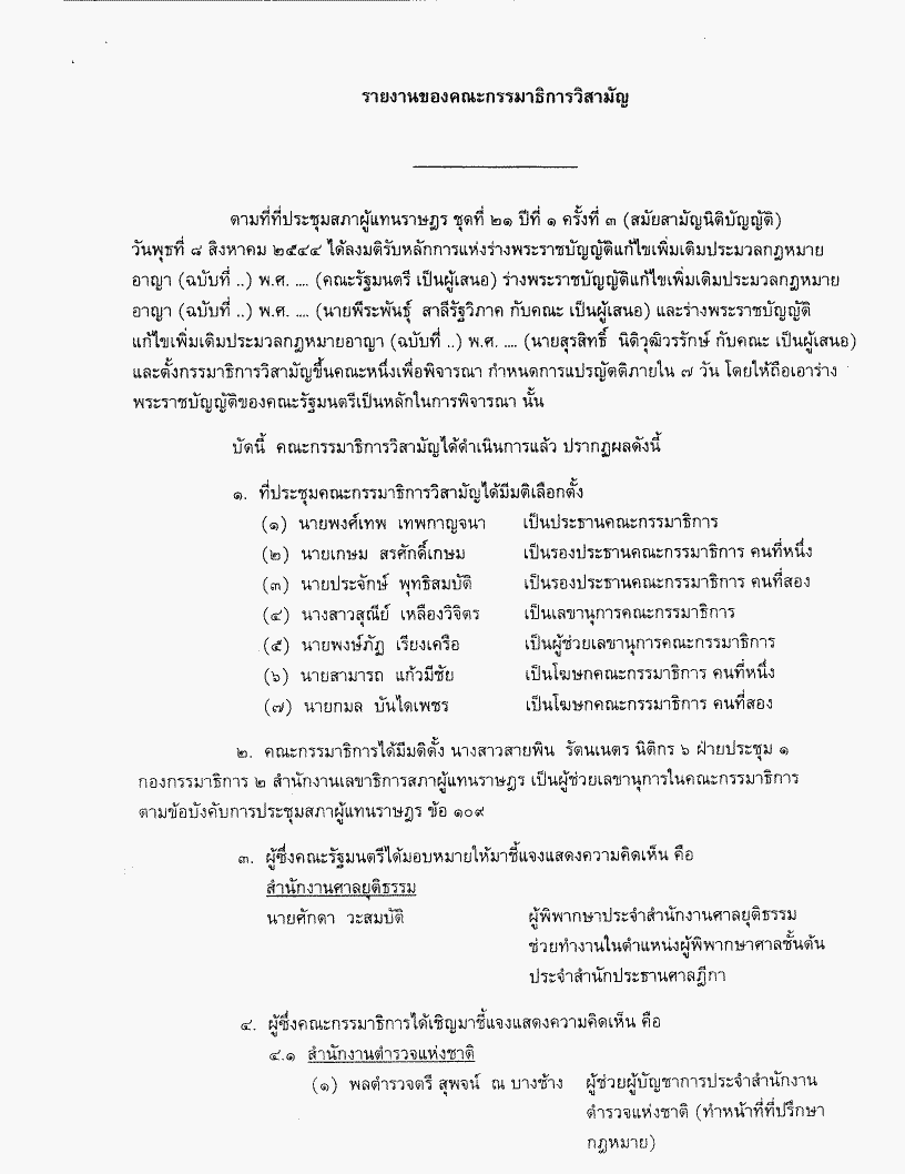 ชื่อเอกสาร :   ร่างพระราชบัญญัติแก้ไขเพิ่มเติมประมวลกฎหมายอาญา (ฉบับที่..) พ.ศ..... ซึ่งคณะกรรมาธิการวิสามัญพิจารณาเสร็จแล้ว