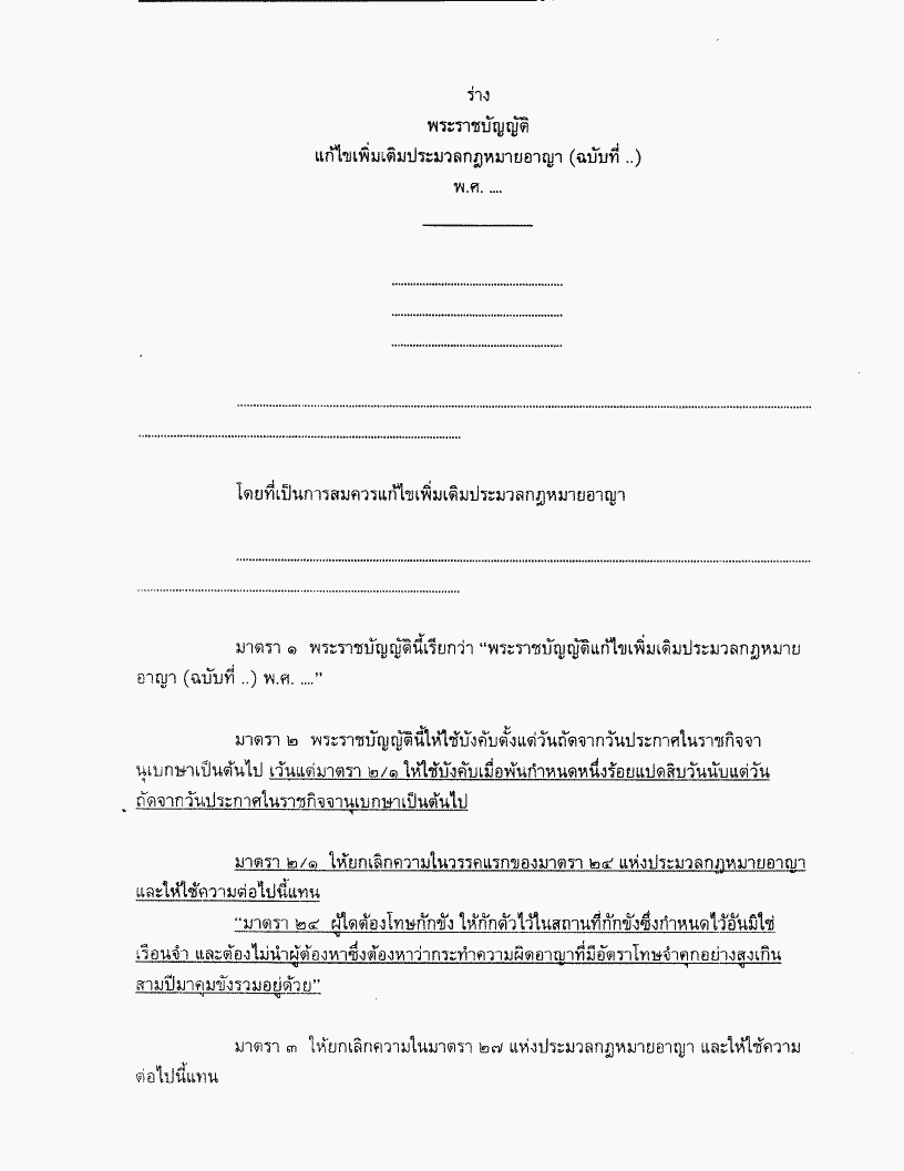 • ร่างพระราชบัญญัติแก้ไขเพิ่มเติมประมวลกฎหมายอาญา (ฉบับที่..) พ.ศ.....