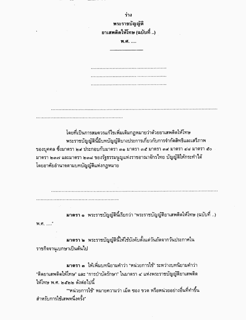 • ร่างพระราชบัญญัติยาเสพติดให้โทษ (ฉบับที่..) พ.ศ....