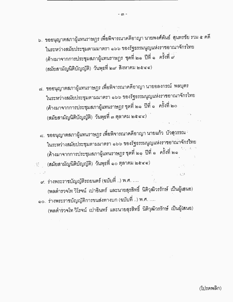 • ระเบียบวาระการประชุมสภาผู้แทนราษฎร ชุดที่ 21 ปีที่ 1 ครั้งที่ 31 (สมัยสามัญนิติบัญญัติ) วันพุธที่ 14 พฤศจิกายน 2544