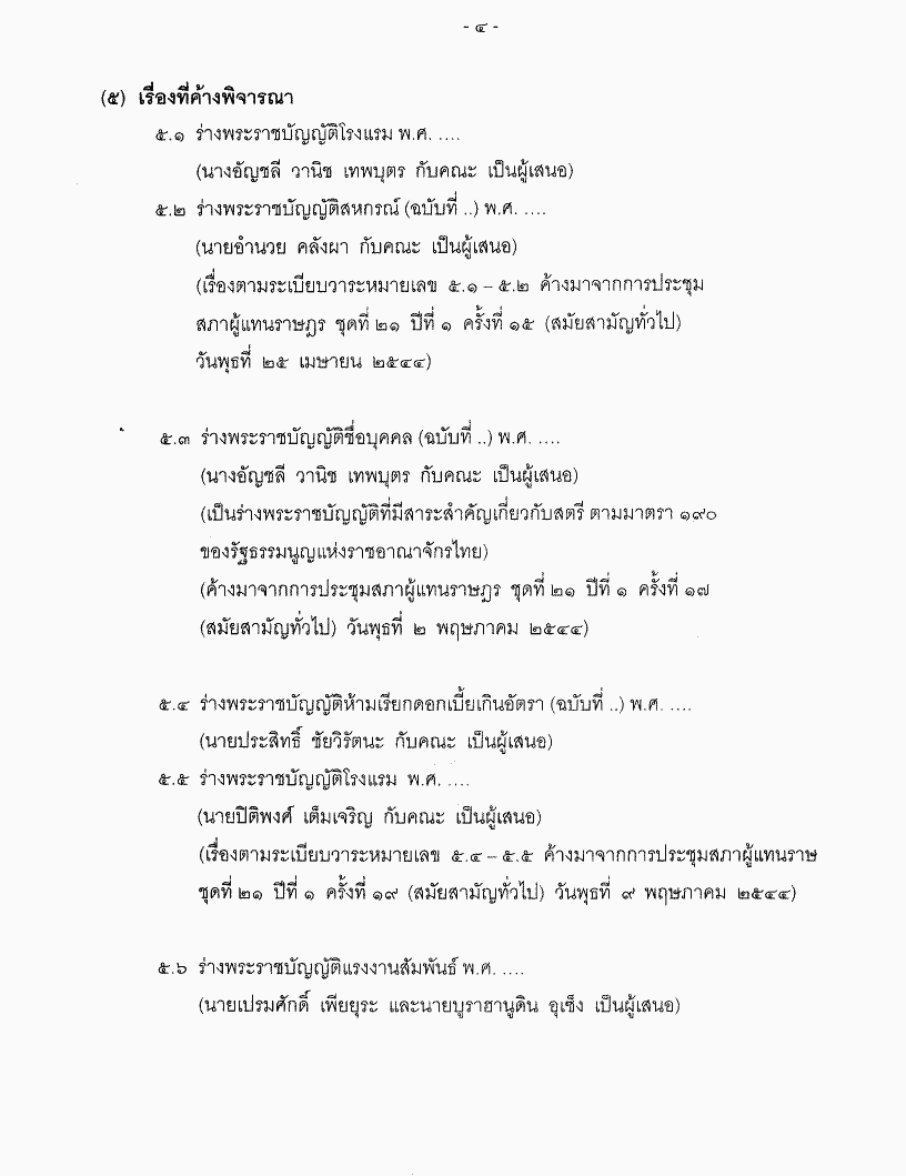 • ระเบียบวาระการประชุมสภาผู้แทนราษฎร ชุดที่ 21 ปีที่ 1 ครั้งที่ 31 (สมัยสามัญนิติบัญญัติ) วันพุธที่ 14 พฤศจิกายน 2544