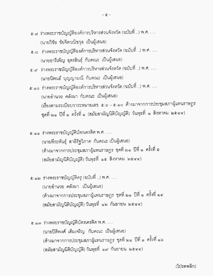 • ระเบียบวาระการประชุมสภาผู้แทนราษฎร ชุดที่ 21 ปีที่ 1 ครั้งที่ 31 (สมัยสามัญนิติบัญญัติ) วันพุธที่ 14 พฤศจิกายน 2544