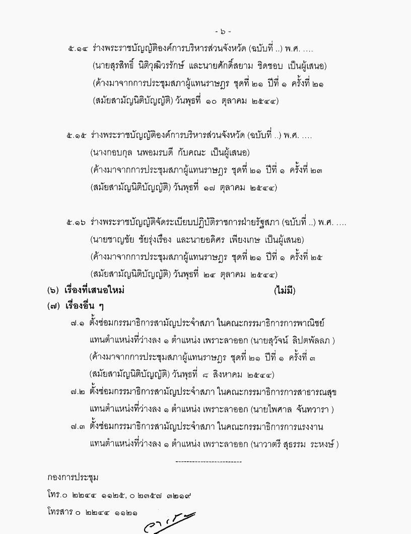 • ระเบียบวาระการประชุมสภาผู้แทนราษฎร ชุดที่ 21 ปีที่ 1 ครั้งที่ 31 (สมัยสามัญนิติบัญญัติ) วันพุธที่ 14 พฤศจิกายน 2544