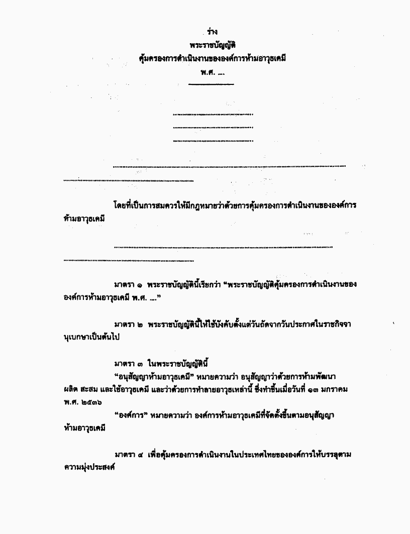 ๑. ร่างพระราชบัญญัติคุ้มครองการดำเนินงานขององค์การห้ามอาวุธเคมี พ.ศ. .... (คณะรัฐมนตรี เป็นผู้เสนอ) |