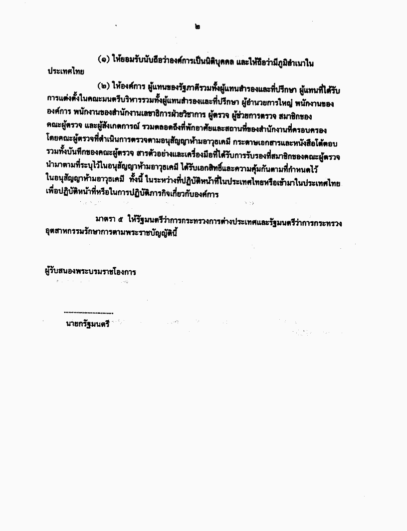 ชื่อเอกสาร :   ๑. ร่างพระราชบัญญัติคุ้มครองการดำเนินงานขององค์การห้ามอาวุธเคมี พ.ศ. .... (คณะรัฐมนตรี เป็นผู้เสนอ)