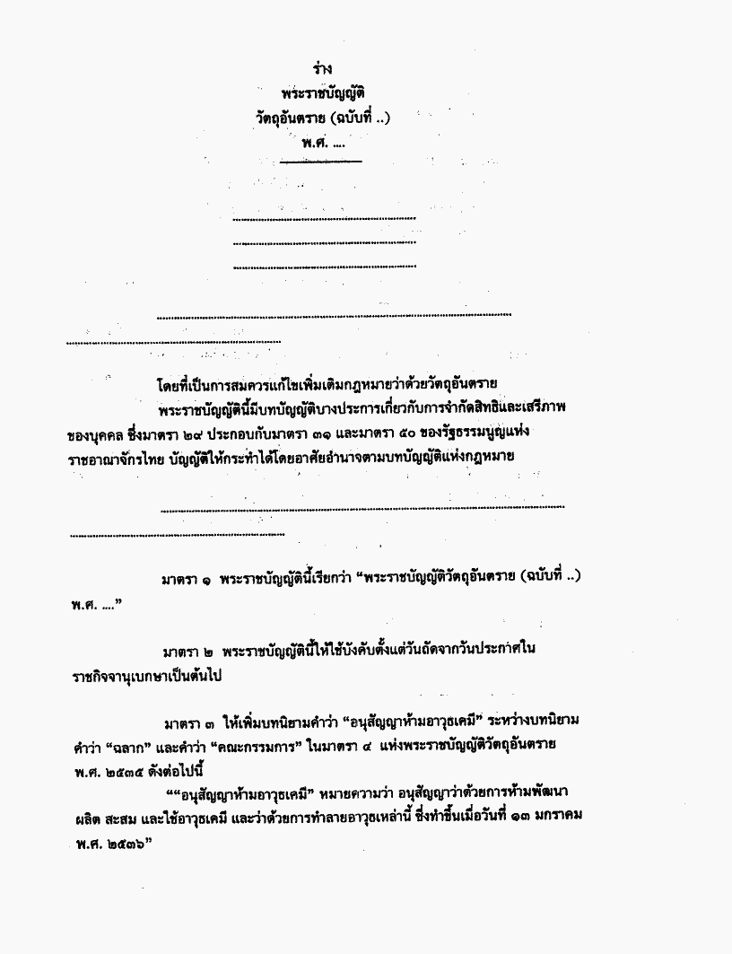 ชื่อเอกสาร :   ๒. ร่างพระราชบัญญัติวัตถุอันตราย (ฉบับที่ ..)พ.ศ. .... (คณะรัฐมนตรี เป็นผู้เสนอ)