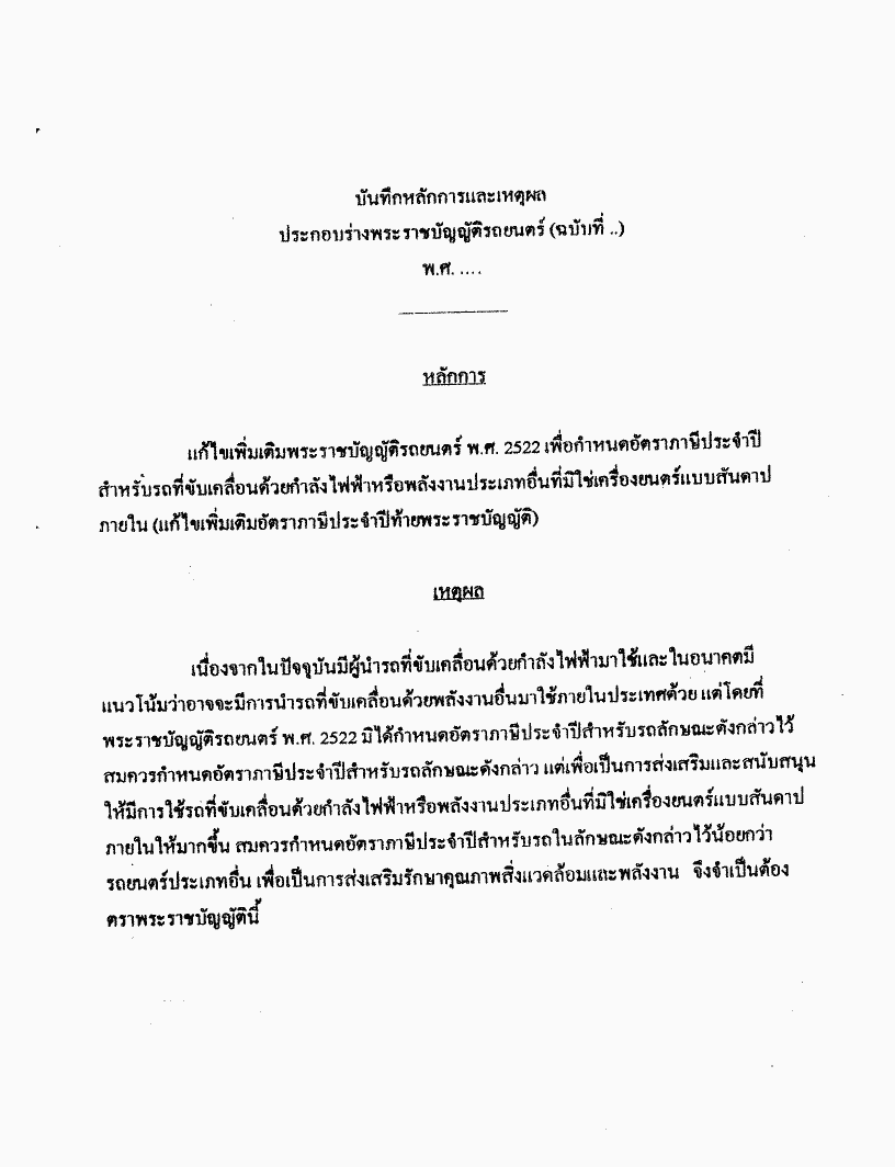 • ร่างพระราชบัญญัติรถยนต์ (ฉบับที่ ..) พ.ศ. .... (กำหนดอัตราภาษีรถที่ขับเคลื่อนด้วยกำลังไฟฟ้า)
