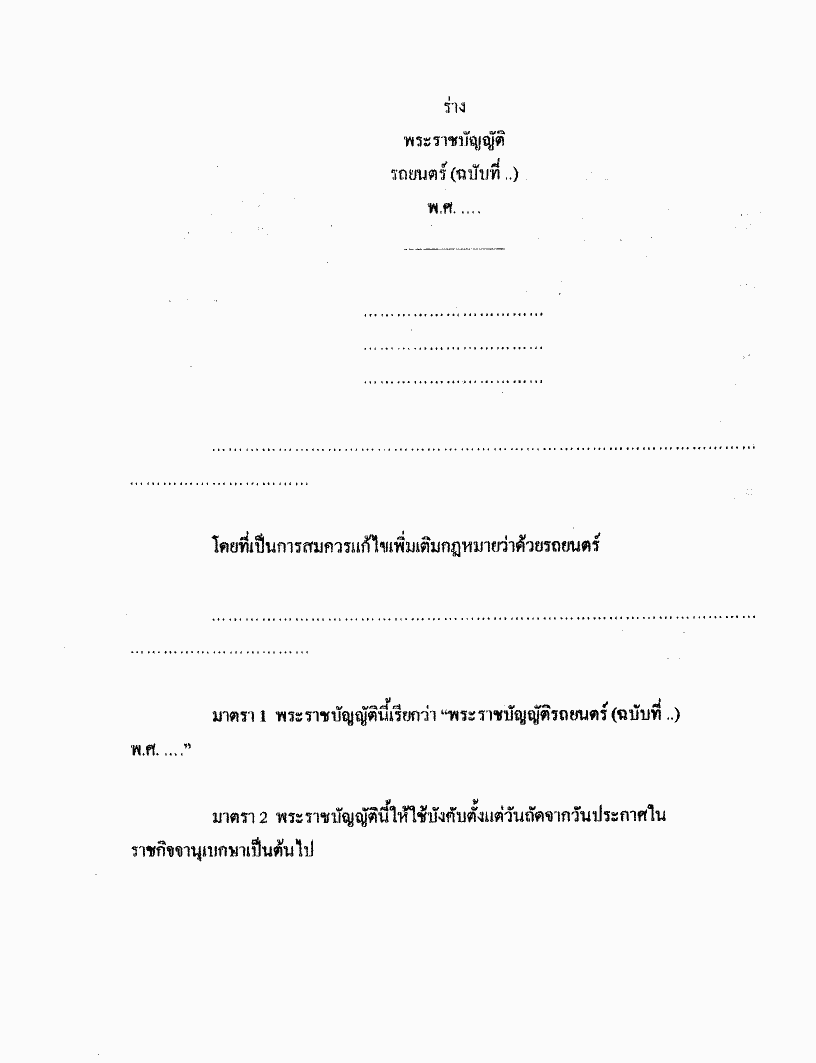 ร่างพระราชบัญญัติรถยนต์ (ฉบับที่ ..) พ.ศ. .... (กำหนดอัตราภาษีรถที่ขับเคลื่อนด้วยกำลังไฟฟ้า) |