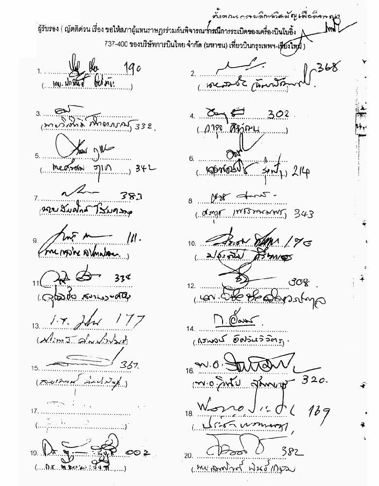 ชื่อเอกสาร :   ญัตติด่วน เรื่อง ขอให้สภาผู้แทนราษฎรร่วมกันพิจารณาตั้งคณะกรรมาธิการวิสามัญ เพื่อพิจารณากรณ์การระเบิกของเครื่องบินโบอิ้ง 737-400 ของบริษัทการบินไทย จำกัด (มหาชน) เที่ยวบินกรุงเทพฯ-เชียงใหม่
