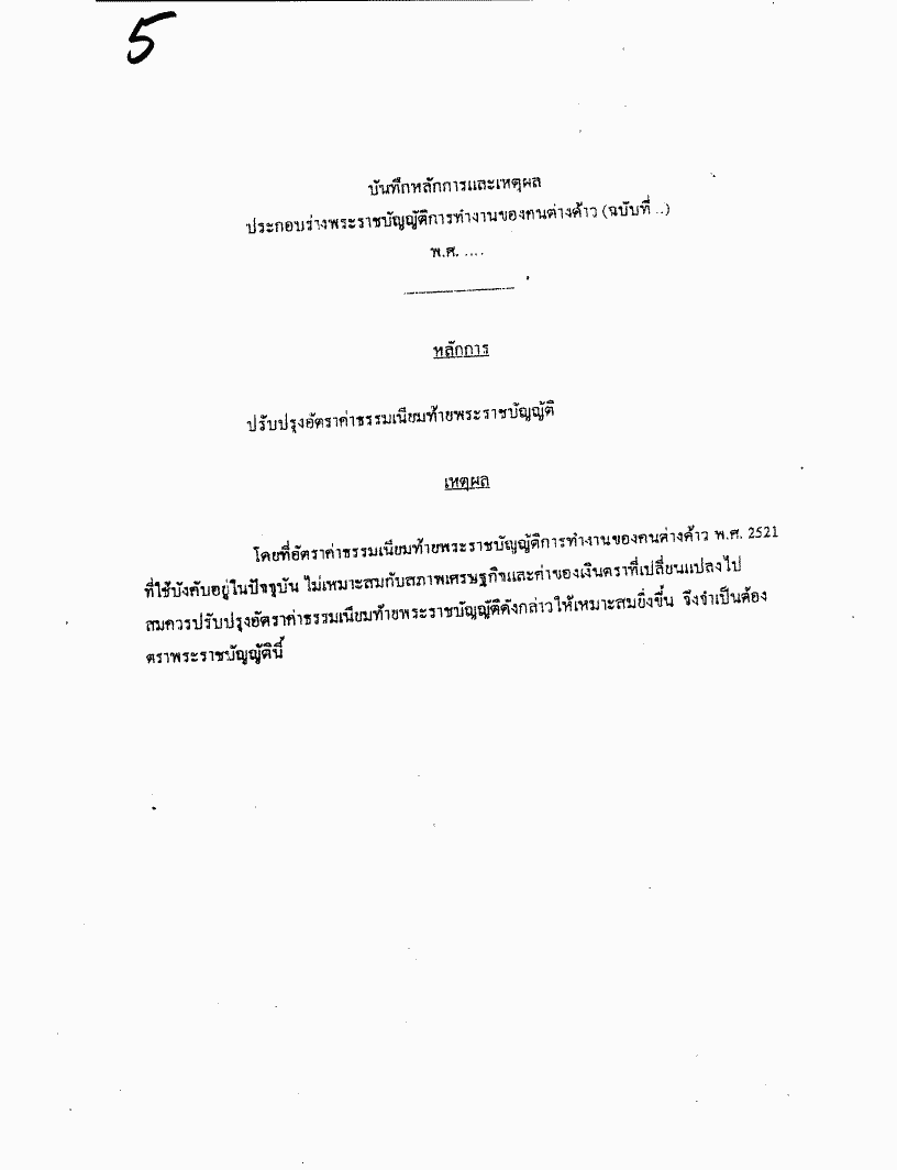 ๕. ร่างพระราชบัญญัติการทำงานของคนต่างด้าว (ฉบับที่ ..) พ.ศ. .... (คณะรัฐมนตรี เป็นผู้เสนอ) |