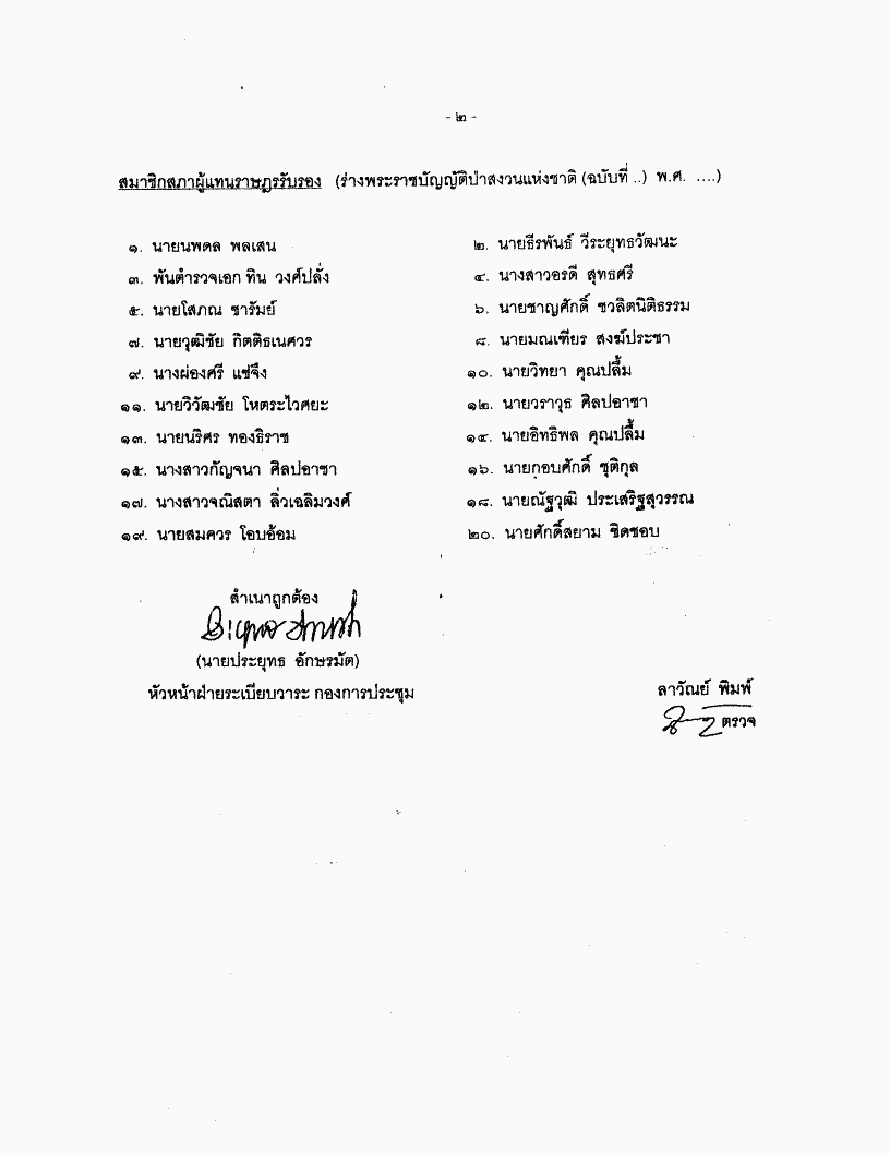 ชื่อเอกสาร :   ร่างพระราชบัญญัติป่าสงวนแห่งชาติ (ฉบับที่..) พ.ศ. .... (พลตำรวจโท วิโรจน์ เปาอินทร์ และนายสุรสิทธิ์ นิติวุฒิวรรักษ์ เป็นผู้เสนอ) ซึ่งคณะรัฐมนตรีขอรับไปพิจารณาก่อนรับหลักการ และได้ส่งคืนสภาฯ เพื่อพิจารณา