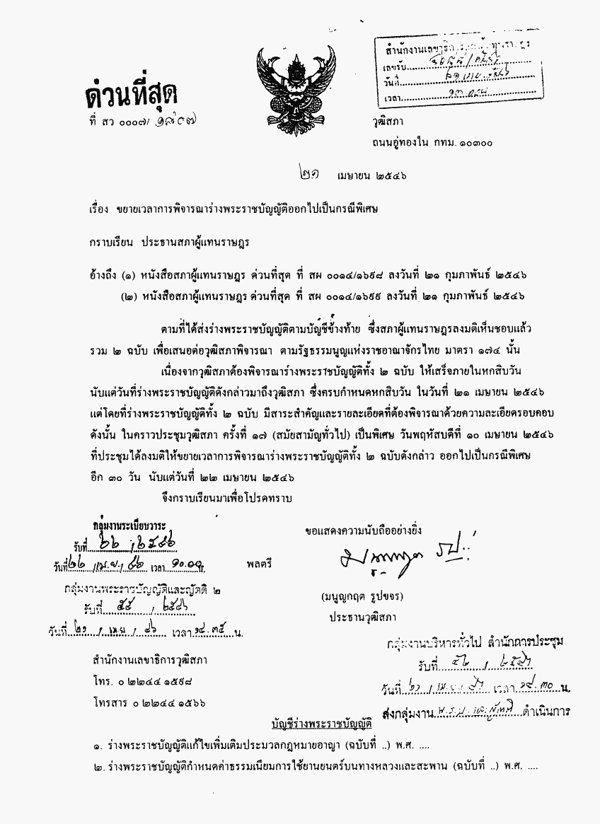 ขยายเวลาการพิจารณาร่างพระราชบัญญัติออกไปเป็นกรณีพิเศษ |