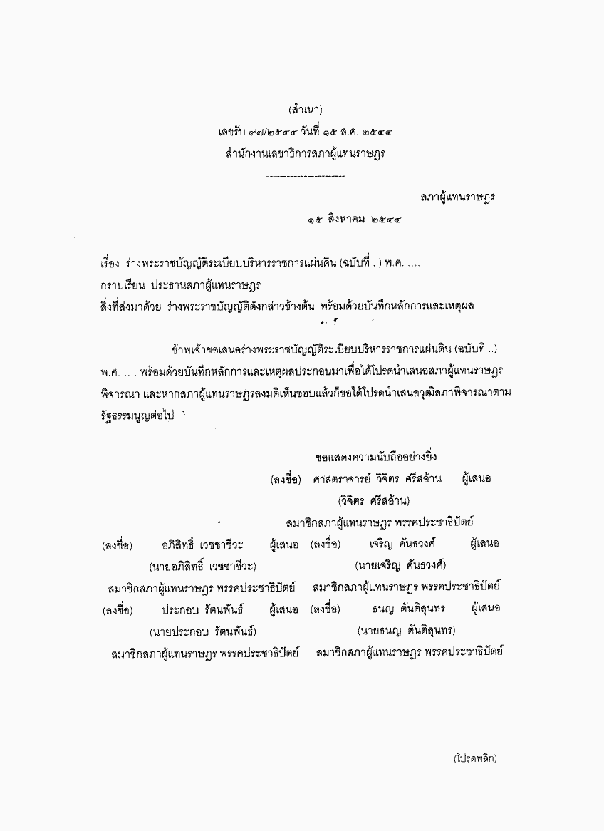 ชื่อเอกสาร :   ร่างพระราชบัญญัติระเบียบบริหารราชการแผ่นดิน (ฉบับที่..) พ.ศ. .... (ศาสตราจารย์วิจิตร ศรีสอ้าน กับคณะ เป็นผู้เสนอ)
