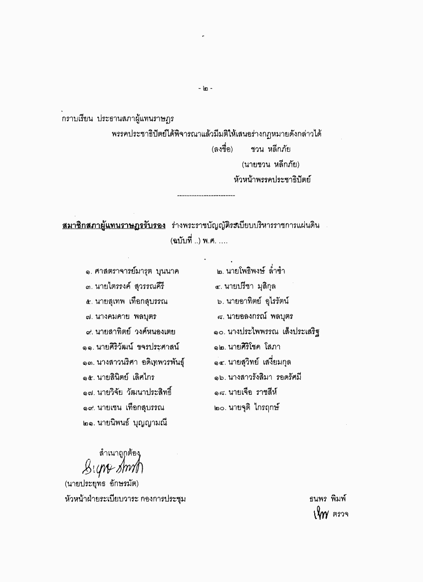 • ร่างพระราชบัญญัติระเบียบบริหารราชการแผ่นดิน (ฉบับที่..) พ.ศ. .... (ศาสตราจารย์วิจิตร ศรีสอ้าน กับคณะ เป็นผู้เสนอ)