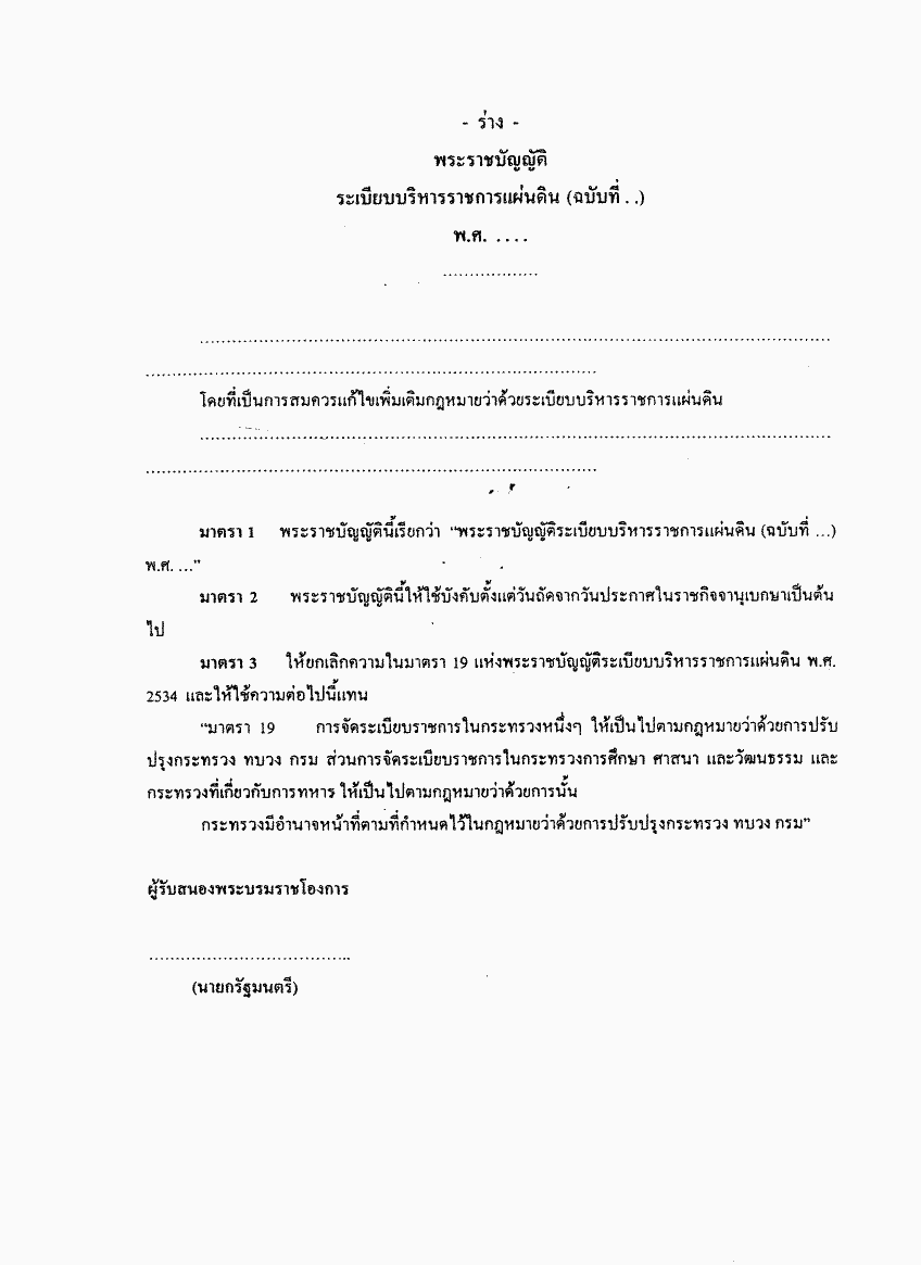 • ร่างพระราชบัญญัติระเบียบบริหารราชการแผ่นดิน (ฉบับที่..) พ.ศ. ....