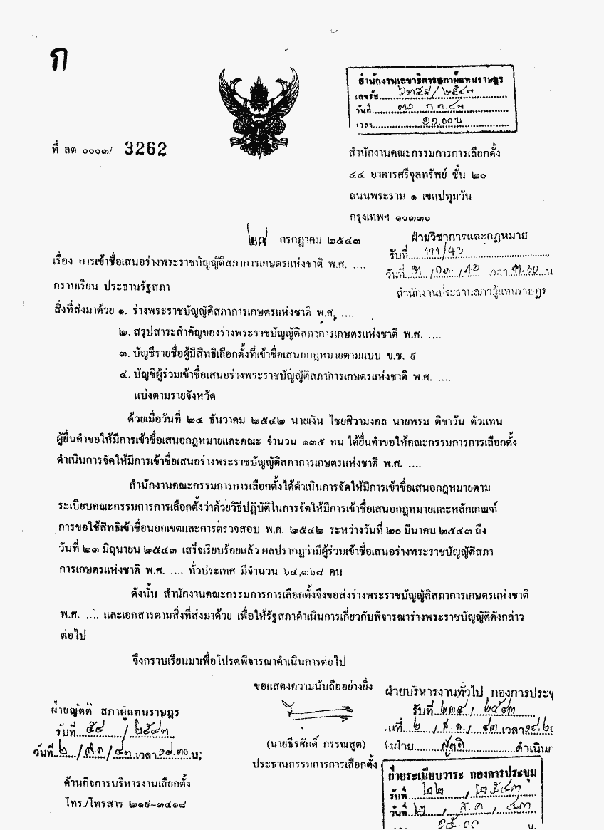 • การเข้าชื่อเสนอร่างพระราชบัญญัติสภาการเกษตรแห่งชาติ พ.ศ. ....