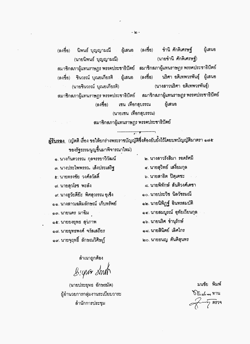• ขอเสนอญัตติ เรื่อง ขอให้ยกร่างพระราชบัญญัติซึ่งต้องยับยั้งไว้โดยบทบัญญัติมาตรา 175