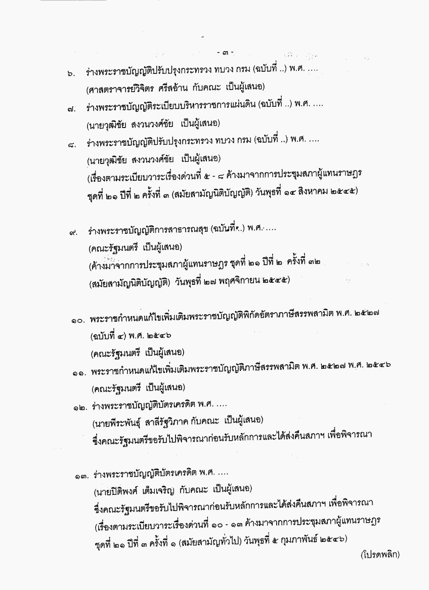 • ระเบียบวาระการประชุมสภาผู้แทนราษฎร ชุดที่ 21 ปีที่ 3 ครั้งที่ 22 (สมัยสามัญทั่วไป) วันพุธที่ 30 เมษายน 2546