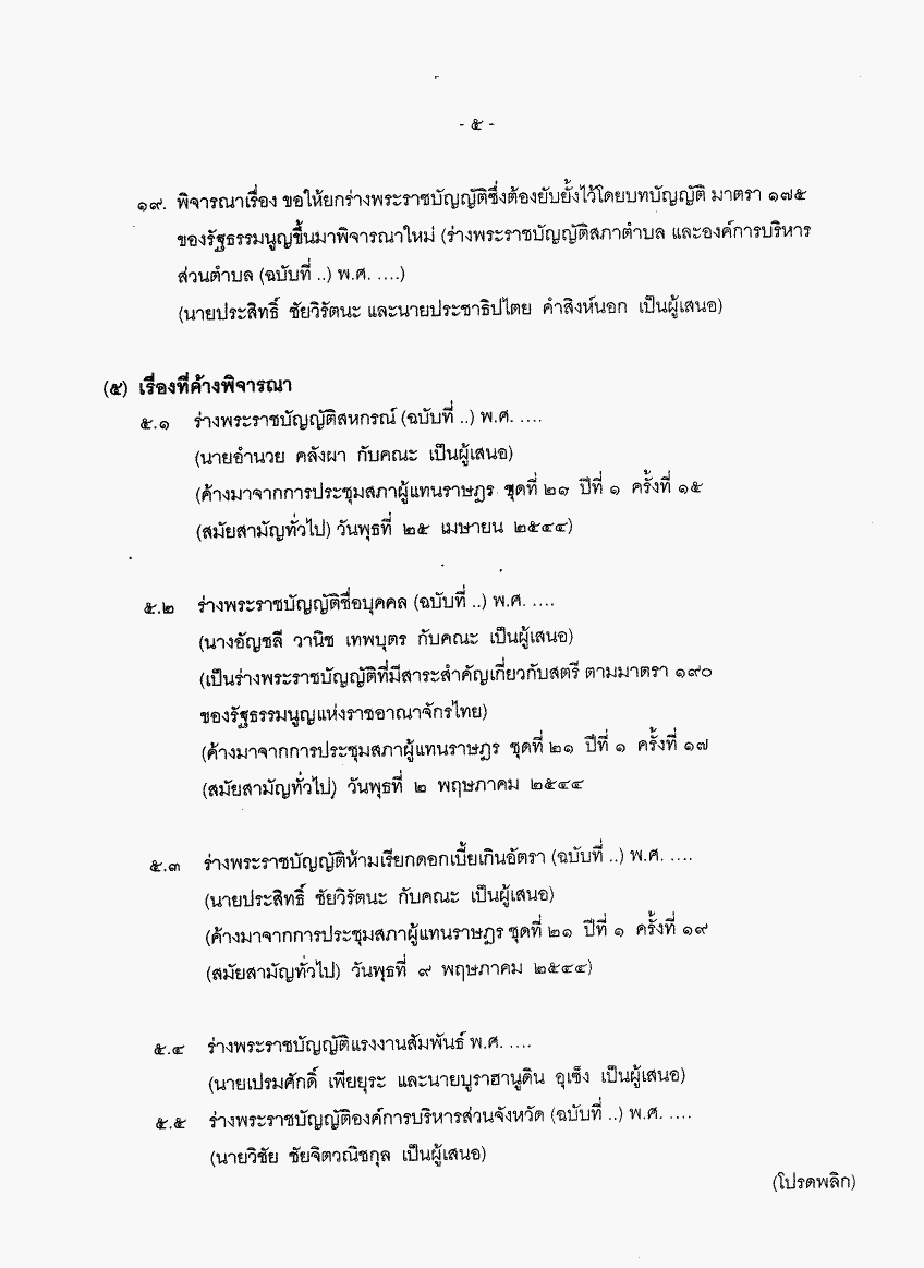 • ระเบียบวาระการประชุมสภาผู้แทนราษฎร > ชุดที่ 21 > ปีที่ 3 > สมัยสามัญทั่วไป > ครั้งที่ 22