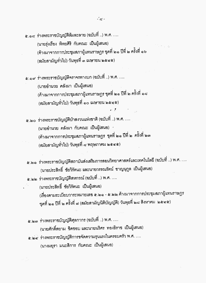 ชื่อเอกสาร : ระเบียบวาระการประชุมสภาผู้แทนราษฎร ชุดที่ 21 ปีที่ 3 ครั้งที่ 22 (สมัยสามัญทั่วไป) วันพุธที่ 30 เมษายน 2546