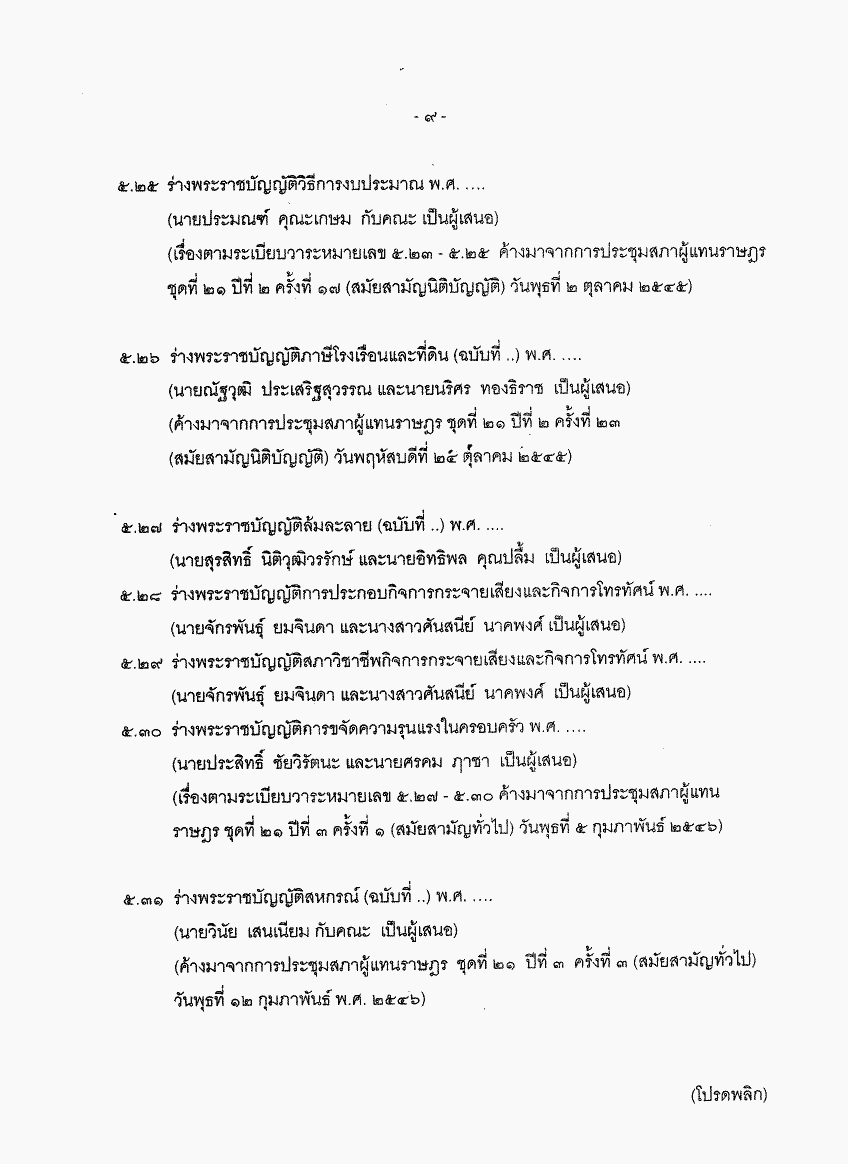 • ระเบียบวาระการประชุมสภาผู้แทนราษฎร ชุดที่ 21 ปีที่ 3 ครั้งที่ 22 (สมัยสามัญทั่วไป) วันพุธที่ 30 เมษายน 2546