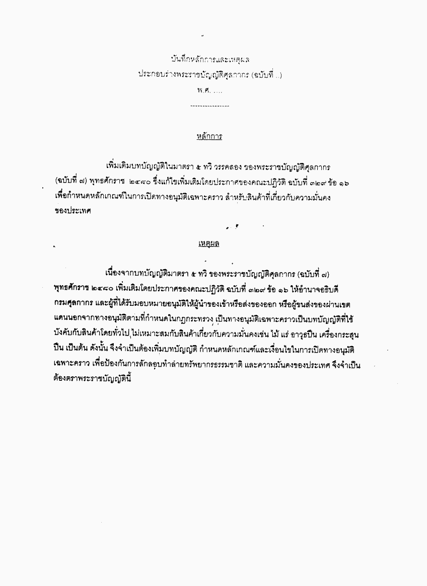 • ร่างพระราชบัญญัติศุลกากร (ฉบับที่ ..) พ.ศ. ....