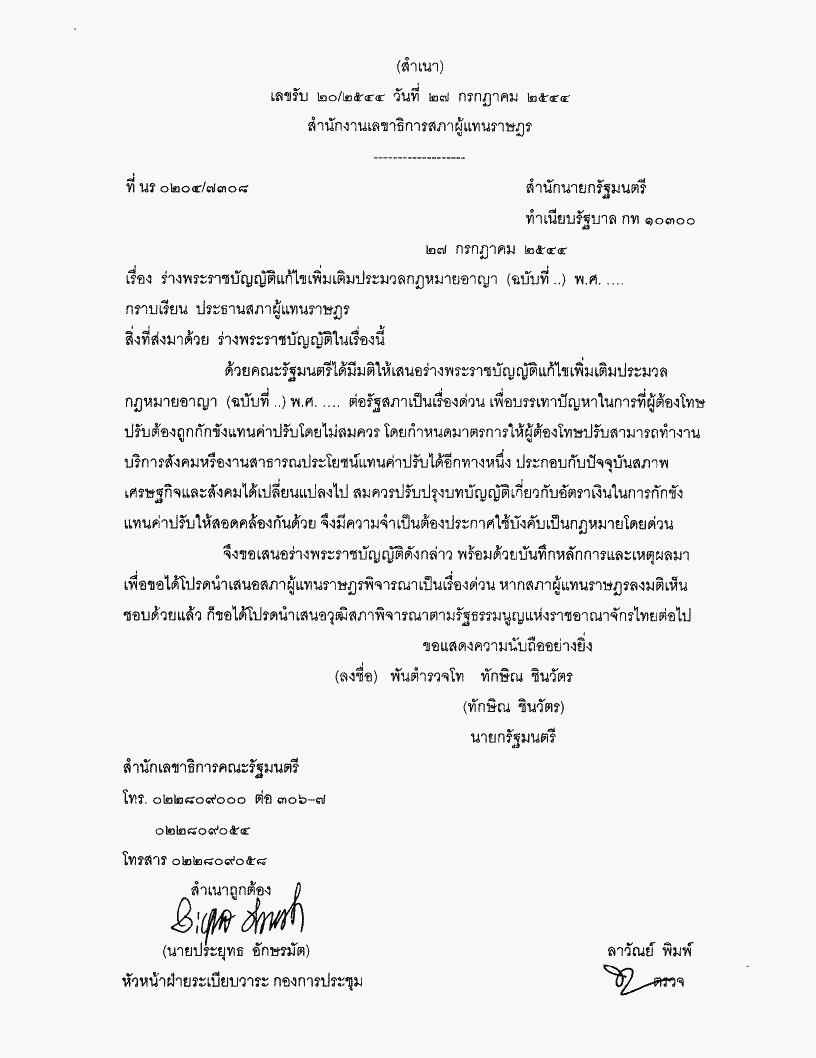 • ร่างพระราชบัญญัติแก้ไขเพิ่มเติมประมวลกฏหมายอาญา (ฉบับที่..) พ.ศ. ....