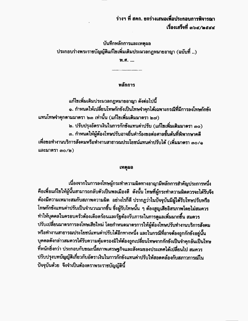• ร่างพระราชบัญญัติแก้ไขเพิ่มเติมประมวลกฏหมายอาญา (ฉบับที่..) พ.ศ. ....