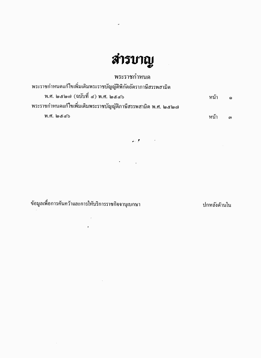 • พระราชกำหนดแก้ไขเพิ่มเติมพระราชบัญญัติพิกัดอัตราภาษีสรรพสามิต พ.ศ. 2527 (ฉบับที่ 4) พ.ศ. 2546 และพระราชกำหนดแก้ไขเพิ่มเติมพระราชบัญญัติภาษีสรรพสามิต พ.ศ. 2427 พ.ศ 2546 รวม 2 ฉบับ