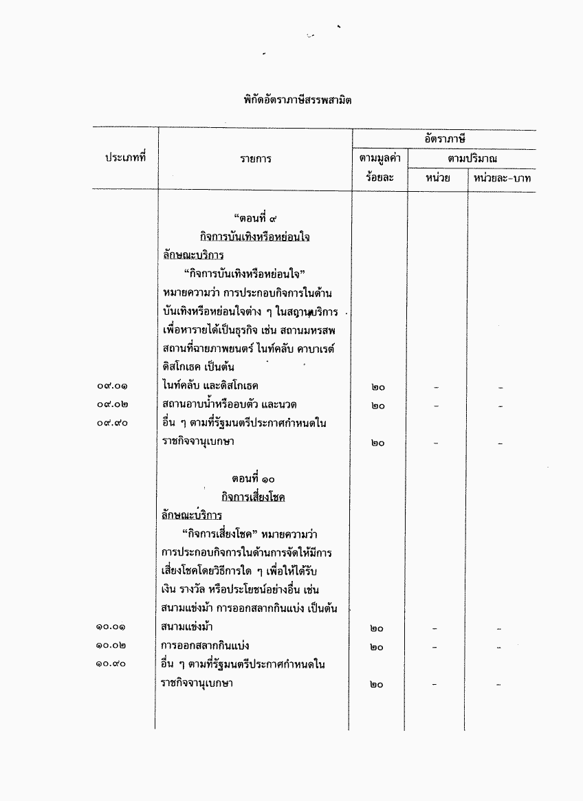 • พระราชกำหนดแก้ไขเพิ่มเติมพระราชบัญญัติพิกัดอัตราภาษีสรรพสามิต พ.ศ. 2527 (ฉบับที่ 4) พ.ศ. 2546 และพระราชกำหนดแก้ไขเพิ่มเติมพระราชบัญญัติภาษีสรรพสามิต พ.ศ. 2427 พ.ศ 2546 รวม 2 ฉบับ