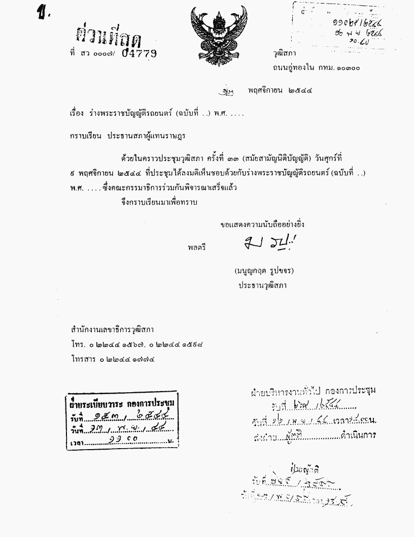 ร่างพระราชบัญญัติรถยนตร์ (ฉบับที่..) พ.ศ..... |