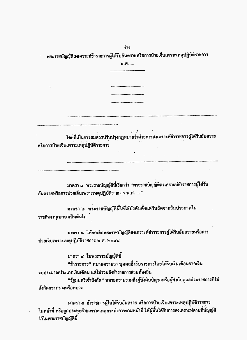 • ร่างพระราชบัญญัติสงเคราะห์ข้าราชการผู้ได้รับอันตรายหรือการป่วยเจ็บเพราะเหตุปฏิบัติราชการ พ.ศ. ....