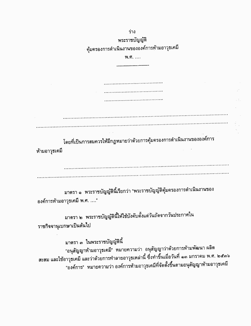 • ร่างพระราชบัญญัติคุ้มครองการดำเนินงานขององค์การห้ามอาวุธเคมี พ.ศ.....