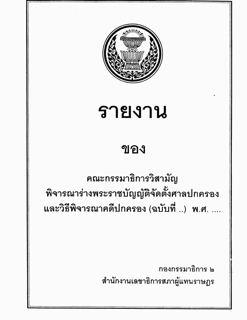 ชื่อเอกสาร :   ร่างพระราชบัญญัติจัดตั้งศาลปกครองและวิธีพิจารณาคดีปกครอง (ฉบับที่..) พ.ศ..... ซึ่งคณะกรรมาธิการวิสามัญพิจารณาเสร็จแล้ว