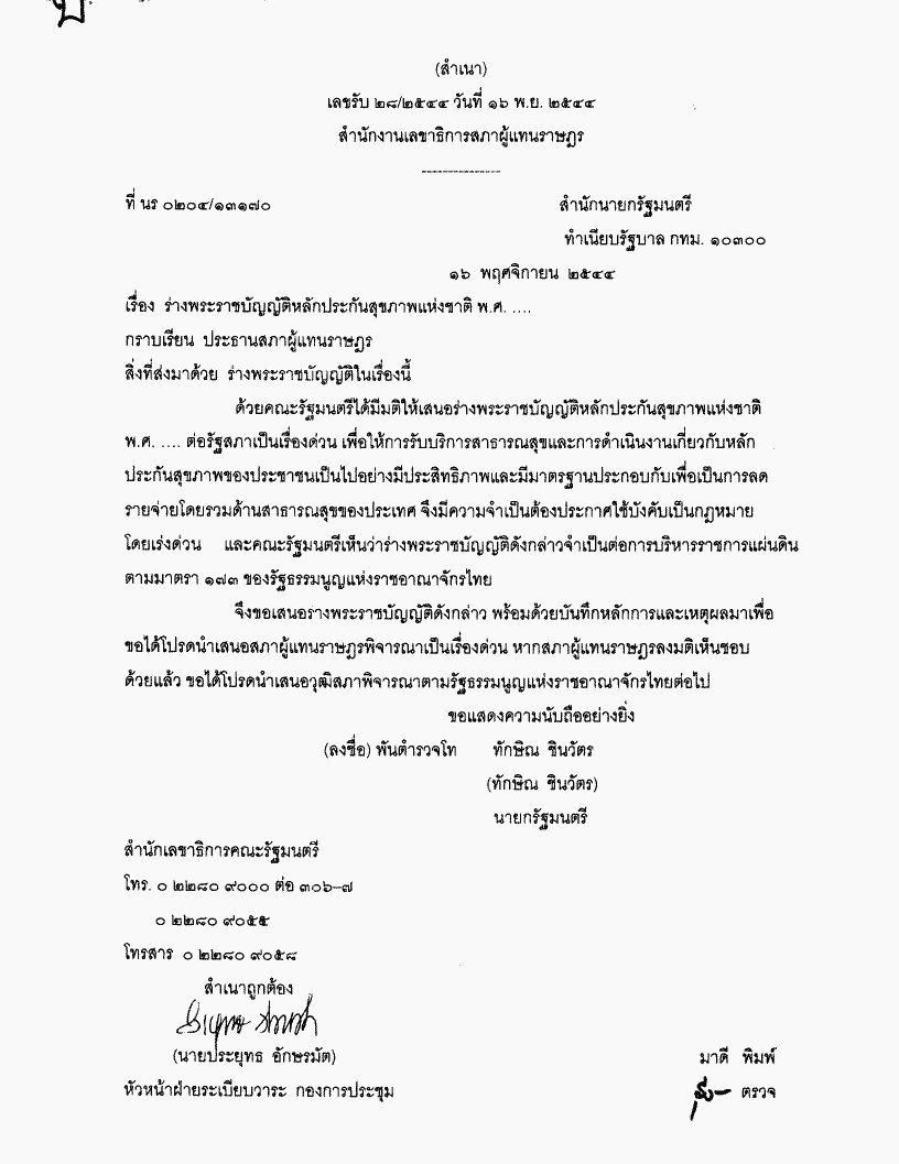• ร่างพระราชบัญญัติหลักประกันสุขภาพแห่งชาติ พ.ศ..... (คณะรัฐมนตรี เป็นผู้เสนอ)