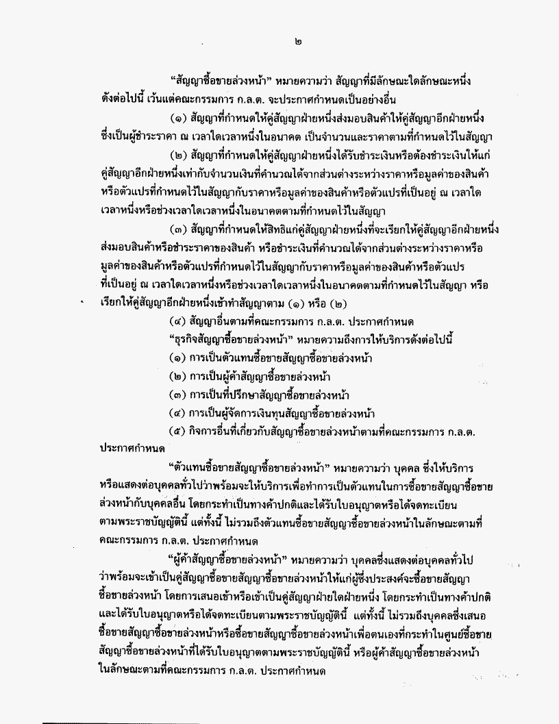 ร่างพระราชบัญญัติสัญญาซื้อขายล่วงหน้า พ.ศ. .... และร่างพระราชบัญญัติหลักทรัพย์ และตลาดหลักทรัพย์ (ฉบับที่..) พ.ศ. .... รวม ๒ ฉบับ