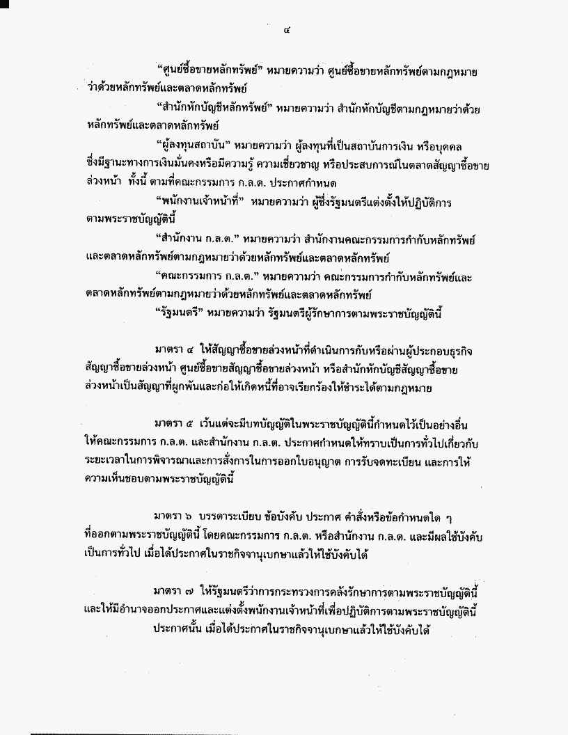 ร่างพระราชบัญญัติสัญญาซื้อขายล่วงหน้า พ.ศ. .... และร่างพระราชบัญญัติหลักทรัพย์ และตลาดหลักทรัพย์ (ฉบับที่..) พ.ศ. .... รวม ๒ ฉบับ
