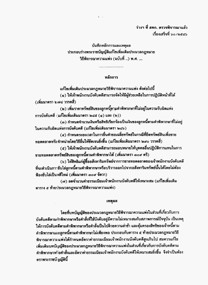 • ร่างพระราชบัญญัติแก้ไขเพิ่มเติมประมวลกฎหมายวิธีพิจารณาความแพ่ง (ฉบับที่ ..) พ.ศ. ....