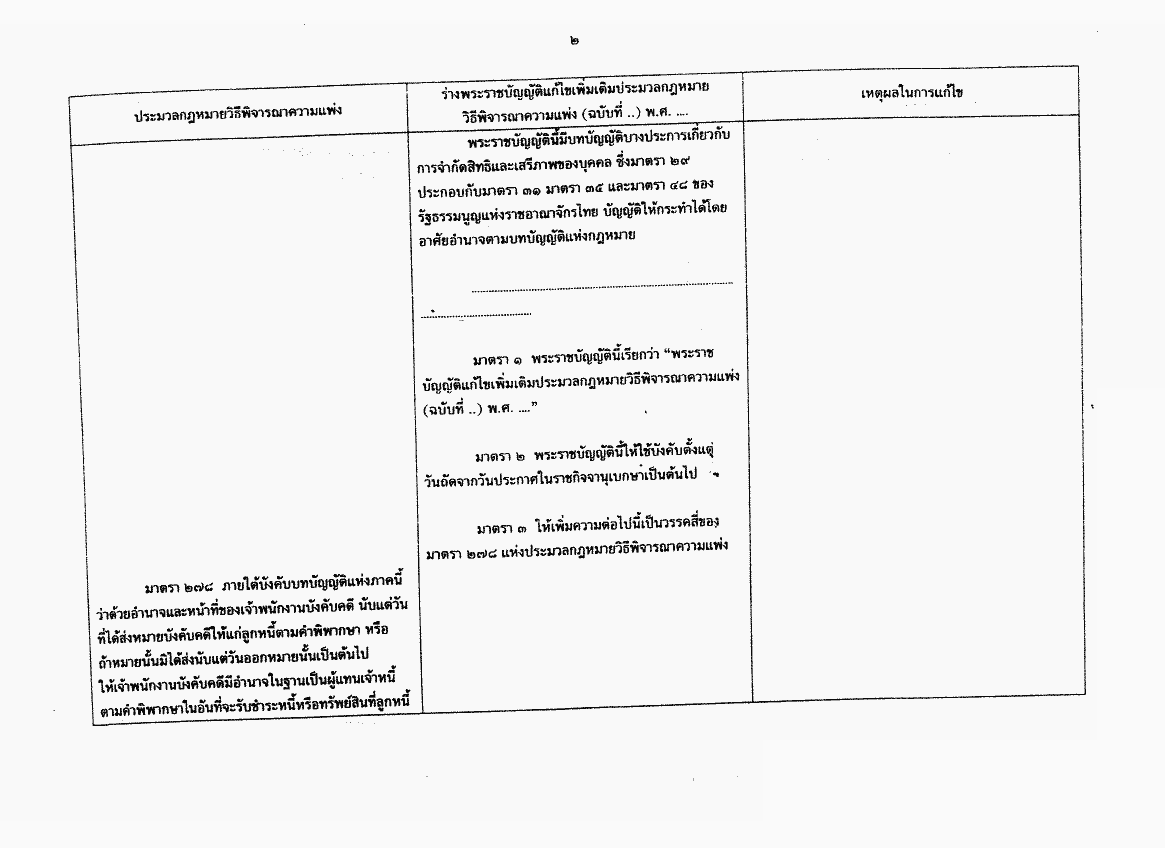 • ร่างพระราชบัญญัติแก้ไขเพิ่มเติมประมวลกฎหมายวิธีพิจารณาความแพ่ง (ฉบับที่ ..) พ.ศ. ....