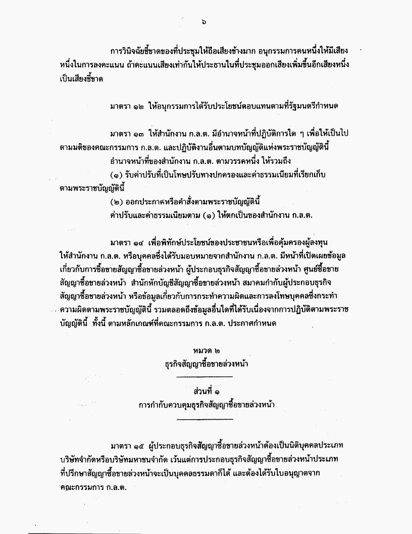 ร่างพระราชบัญญัติสัญญาซื้อขายล่วงหน้า พ.ศ. .... และร่างพระราชบัญญัติหลักทรัพย์ และตลาดหลักทรัพย์ (ฉบับที่..) พ.ศ. .... รวม ๒ ฉบับ
